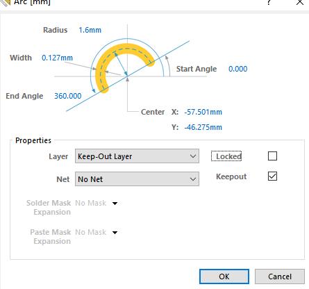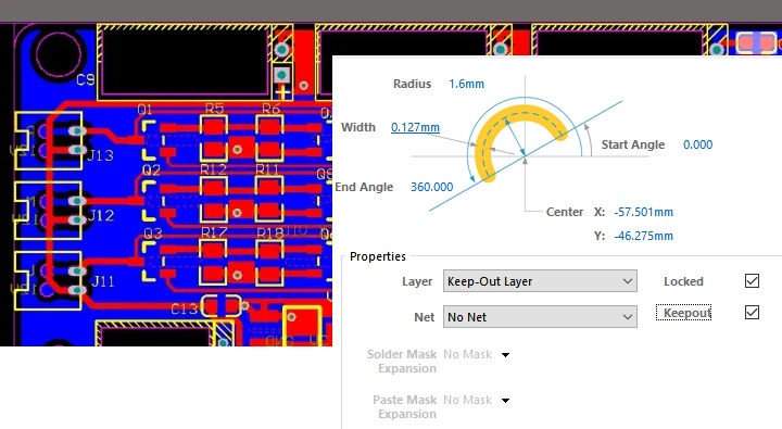 2.雙擊槽孔畫(huà)線,打開(kāi)線的屬性,取消鎖定。( Keepout打勾取消)